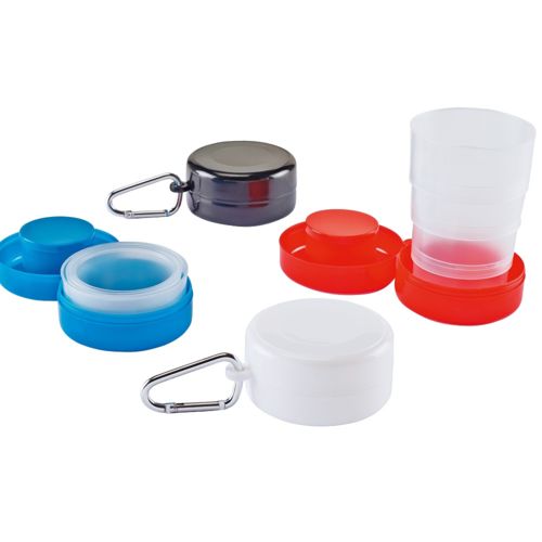Copo retrátil 200 ml, com mosquetão e compartimento para comprimidos Foldcup