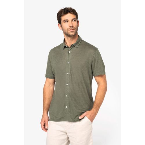 Camisa de manga curta em linho com colarinho à bowling de senhora