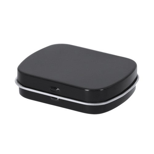 Dispensador de pastilhas sem açúcar com 23 g. Apresentado em uma caixa de metal com tampa articulada. Aprox. 150 Rebuçados Hortelã Sem Açúcar (23 gr.) Composition : Metal.