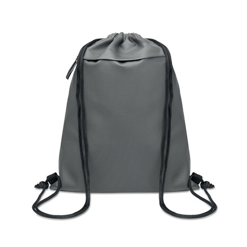 Saco com cordão com poliéster 600D RPET revestido a PU e forro em poliéster 190T RPET. Bolso frontal com fecho de correr.