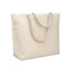 Saco de praia ou de compras em algodão reciclado (80% algodão reciclado, 20% algodão normal) com pegas em corda. 220 gr/m².Dimensions : 55X15X39CM