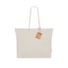 Bolsa confeccionada principalmente em Algodão Reciclado de 220g/m². Com bolso e alças longas de algodão na cor natural e design trançado. Inclui distintivo algodão reciclado. Composition : Algodão Reciclado 220 g/ m2.