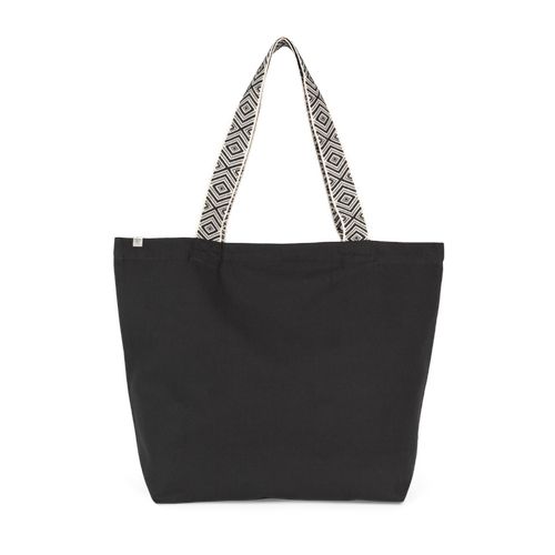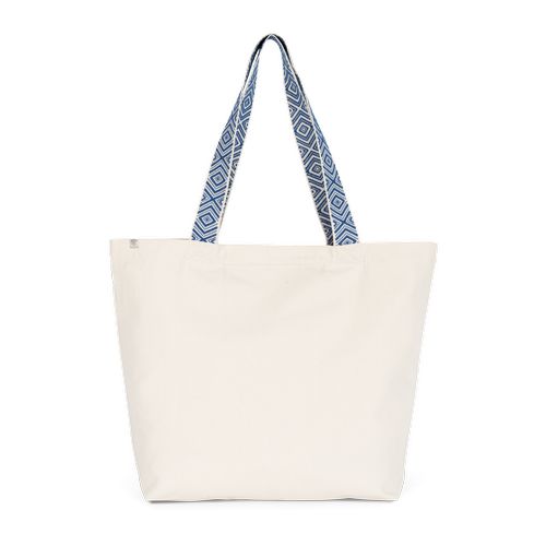 Bolso interior com fecho. Concebido com materiais reciclados. Tecido canvas. Black Night: 285 gsm canvas: 67% algodão reciclado/30% poliéster reciclado/3% outras fibras. Ecume: 285 gsm canvas: 75% algodão reciclado/22% poliéster reciclado/3% outras fibras. As alças com cores em contraste apresentam grafismos de inspiração étnica e medem 60 cm de comprimento e 4,25 cm de largura para conferir maior conforto. Certificações : Global recycled standard