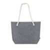 Bolsa fabricada em feltro reciclado. Com alças de cordão em algodão reforçadas com argolas e fundo. Resistência até 6kg. Distintivo RPET na etiqueta exterior.O material RPET é elaborado a partir de plástico reciclado, para assim promover a reutilização de resíduos plásticos e ajudar à sustentabilidade do planeta. Composition : Feltro RPET/ Algodão.