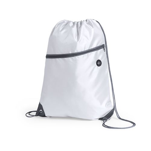 Saco mochila fabricado em suave poliéster 210D. Com bolso frontal com fecho de correr e saída de auriculares. Cordões na cor cinza, a condizer com o fecho e esquinas com argolas metálicas e reforço de PU. Numa variada gama de cores.Composition : Poliéster 210D.