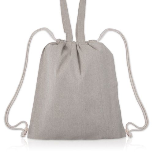 Saco mochila, asas longas algodão reciclado 150g m2. Um brinde que pode ser usado de forma versátil, já que incluí alças cordão para usar como mochila e asas compridas para usar como saco. Em material reciclado e ecológico.