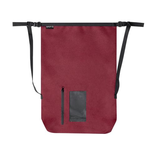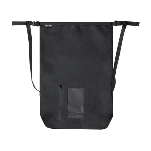 Mochila impermeável de grande capacidade (25L), fabricada em resistente RPET 300D. Com fecho de segurança, pega com fivela de ajuste, mosquetão, e fitas ajustáveis. Além disso, inclui janela tátil frontal em PVC transparente. Com etiqueta distintiva de RPET no fecho. Disponível numa variada gama de cores e apresentada numa bolsa individual reciclada. O material RPET é elaborado a partir de plástico reciclado, para assim promover a reutilização de resíduos plásticos e ajudar na sustentabilidade do planeta.25 L. Impermeável. Ecrã TátilComposition : Poliéster 300D RPET.