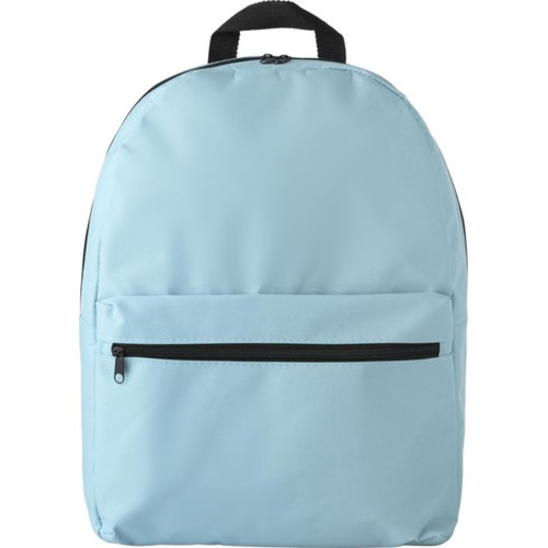 Mochila de poliéster (600D) com fecho de correr no compartimento principal e bolso frontal. A mochila tem alças de ombro ajustáveis e almofadadas. Colors : verde claro Materials : Poliéster 600D Certificates : Cadmium (nr 2), PAHs (nr 4), Phthalates (nr 13), AZO Dyes/Amines (nr 18), Formaldehyde (nr 30), Heavy Metals (nr 12), Lead (nr 19), Colour Release (nr 108).