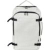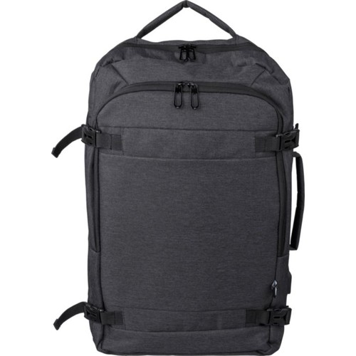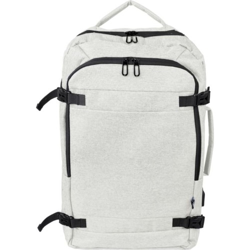 Mochila para portátil (17 polegadas) em poliéster rPET (300D) com forro interior 210D. Ideal para cabinas. Com alça de transporte no topo e nos lados. Compartimento para portátil com velcro, bolso antirroubo e dois compartimentos grandes com fecho de correr. Parte traseira almofadada e ventilada, alça para trolley, fivelas de fecho e porta USB-A na parte lateral. Com fivelas laterais para manter a bagagem compacta. Peso de transporte de cerca de 12 kg. Inclui etiqueta rPET. Colors : cinzento claro Materials : Poliéster 210D/Gaze/Espuma/EPE/300D/rPET.