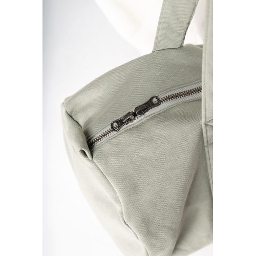 Exterior: 85% algodão biológico / 15% poliéster reciclado pós-consumo. Forro: 75% algodão reciclado / 22% poliéster reciclado / 3% outras fibras. ONE SIZE (25 x 50 x 25 cm). Capacidade: 25 l. Algodão penteado. Tecido LSF 3 fios (Low Shrinkage Fleece: malha pré-encolhida). Banho de enzimas. Abertura com duplo fecho. Forrado com bolso interior com fecho e fecho para a personalização em nylon reciclado. Fecho de abertura em metal reciclado. Alças reforçadas. Certificações : Algodão Biológico EVE Vegan Polyester recyclé