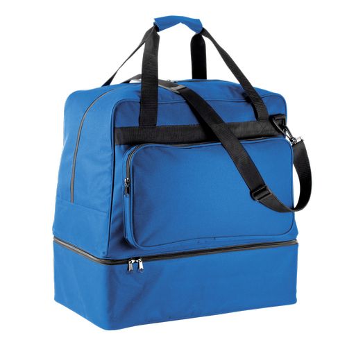 Base rígida amovível. Bolso frontal com fecho para facilitar a personalização. Porta-cartões e alça de ombro amovível. Saco de desporto em poliéster 600D, 90 litros. Base rígida amovível em polipropileno com pés em plástico. Bolso na zona frontal com fecho para facilitar a personalização, porta-cartões para colocar identificação, alça de ombro amovível e reforçada com silicone. Base rígida fornecida com o saco.