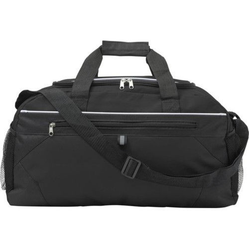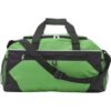 Saco de desporto /viagem em polyester (600D). Com fecho de correr frontal e uma bolsa de malha de ambos os lados. Com 2 alças e uma alça ajustável. Colors : verde Materials : Poliéster/Poliéster 600D Certificates : Cadmium (nr 2), PAHs (nr 4), Phthalates (nr 13), AZO Dyes/Amines (nr 18), Formaldehyde (nr 30), BSCI (nr 195).
