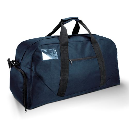 Alças robustas para transportar cargas pesadas. Alça de ombro ajustável e amovível para uma máxima ergonomia. Bolso para calçado, destinado a separar e evitar sujar o interior do saco. 100% poliéster. Saco Duffle em poliéster 600D. Alça de ombro ajustável e amovível, bolso lateral com fecho, porta-identificação na lateral, pegas reforçadas, compartimento para sapatos na lateral. Pés de apoio em plástico.