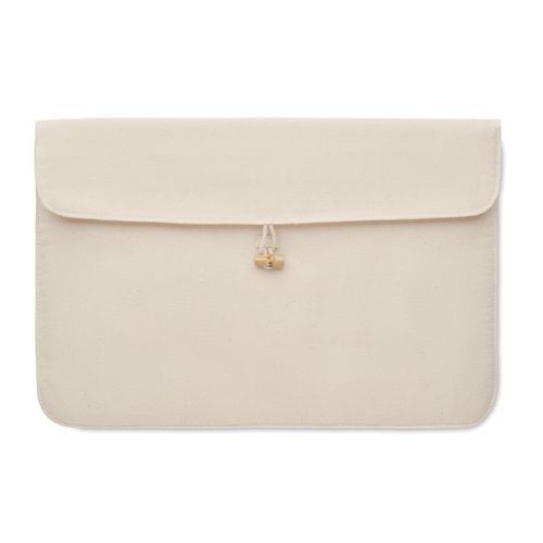 “Saco almofadado para portátil de 15″” em algodão 220 gr/m². Forro interior 120 gr/m². Fecho de botão em bambu.”Dimensions : 39.5X27CM