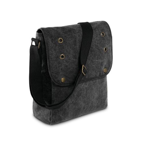 Look e acabamentos vintage para mais elegância e estilo. Excelente resistência e personalização fácil graças ao algodão canvas desbotado. Alça a tiracolo ajustável para maior ergonomia. Saco de lona de algodão com alça de ombro ajustável, aspecto vintage, fivelas e ilhós velho acabamento em cobre, 1 bolso interior.