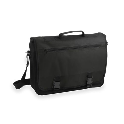 Pasta Porta-documentos com aba de fecho de velcro em poliéster 600D e alça frontal elegante em preto. Com alças de transporte reforçadas e alça de ombro ajustável. Compartimentos interiores para canetas e capa para smartphone em PVC com função táctil.Composition : Poliéster 600D.