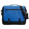 Porta documentos em poliéster 600D. Compartimento principal com fecho, bolso frontal e vários compartimentos. Aba frontal com fechos de plástico e alça ajustável e extraível.
