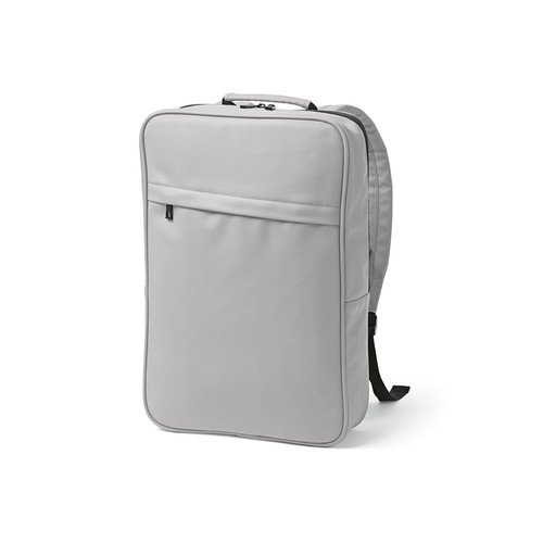 Melhore o seu estilo de forma sustentável com a nossa mochila de 16L de PU reciclado. Um fecho frontal diagonal termoinjetado. Compartimento único com bolso para portátil de 15.6”. Acolchoamento posterior, faixa para trolley e pega reforçada para maior conveniência. Materials : PU Reciclado CO2 : 5.28 Printing technique default : Transfer.