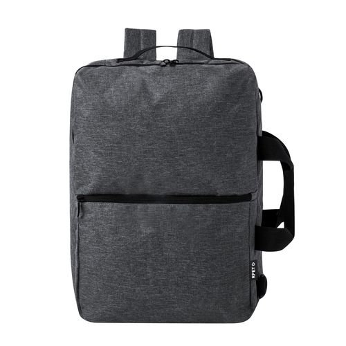Mochila porta-documentos confecionada em resistente 600D RPET. Apresenta um design urbano que incorpora um bolso central com fecho de correr, e duplo puxador. Com interior acolchoado para portátil de até 15 polegadas, bolso adicional com fecho de correr duplo e bolso frontal. As suas alças de ombros e as costas estão acolchoadas e são ajustáveis para maior comodidade. Oferece três modalidades de transporte: como mochila, graças às alças de ombros acolchoadas; como porta-documentos, graças à sua pega de transporte acolchoada; e como bandolera graças à sua alça larga ajustável. Está disponível em três elegantes cores e é apresentada de maniera sofisticada numa bolsa individual reciclada.O material RPET é elaborado a partir de plástico reciclado, para assim fomentar a reutilização de resíduos plásticos e ajudar à sustentabilidade do planeta.Bolso Acolchoado para Portátil. Parte Traseira e Alças AcolchoadasComposition : Poliéster 600D RPET.