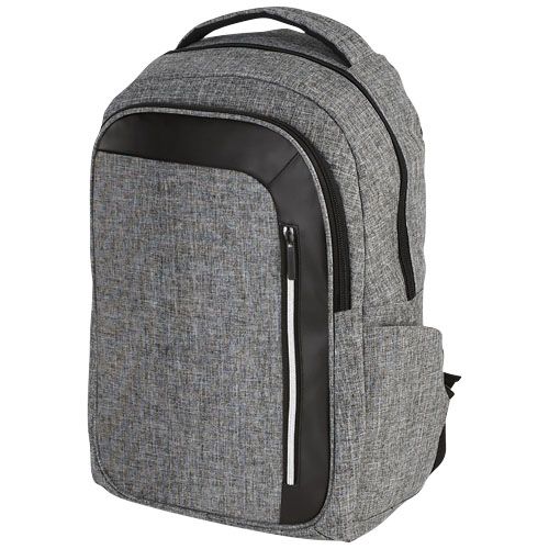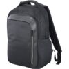 Elegante mochila para computador de 15″, com grande bolso com fecho frontal com porta-chaves e tecnologia RFID oculta para proteger os seus cartões e passaporte de roubo de identidade. O grande compartimento com fecho principal acomoda um portátil de 15″ e oferece um compartimento acolchoado separado para iPad© ou tablet. O fecho frontal vertical permite-lhe acesso rápido ao bolso da frente. 2 bolsos laterais adicionais oferecem mais espaço de armazenamento e as alças ajustáveis acolchoadas com detalhes são confortáveis e permitem-lhe segurar itens adicionais de viagem. A alça de transporte e manga para trólei tornam viajar mais fácil. Pode haver pequenas variações na cor do produto real devido à natureza dos corantes dos tecidos, aos tecidos e à estampagem.600DPoliéster Green Points Total :14 – CO2 foot print : 3,973Serigrafia – frontal – max color : 1 – 140 x 170 mm.