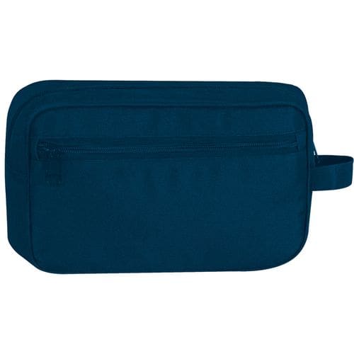 necessaire com alça. confeccionado em tecido impermeável, espesso e resistente no exterior e forro liso no interior. inclui uma alça para um melhor transporte do saco. compartimento grande e bolso exterior, ambos com fecho de correr, para armazenar o que é necessário. métodos adequados de marcação: estampagem, vinil, transfer, etc. ideal para viagens, utilização em ginásio ou piscina.Composition : 50% poliéster 50% upvc.