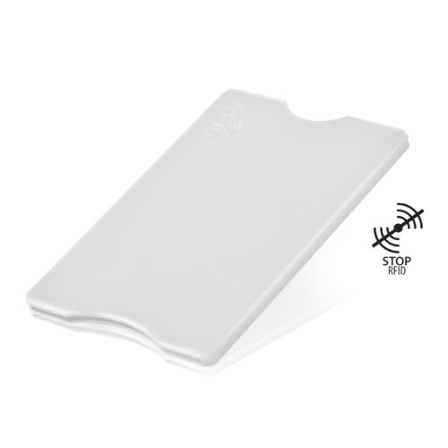 Porta-cartões em plástico, proteção contra RFID. Com os perigos da nova tecnologia wireless nos terminais multibanco, todo o cuidado é pouco. Proteja os seu cartões com um destes porta-cartões, que graças à sua tecnologia protetora RFID, não permitem que o terminal aceda automaticamente ao seu cartão. Boa área de personalização.