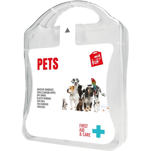 Kit ideal para qualquer apaixonado por animais de estimação. Com este kit está preparado para pequenas feridas ou picadas que o seu animal de estimação possa sofrer. Conteúdo: 12 pensos rápidos impermeáveis, 4 toalhetes de limpeza, 2 toalhetes secos, 1 removedor de caraças, 1 ligadura elástica, 1 pinça, 1 rolo de adesivo. Todos os acessórios de primeiros socorros cumprem com todos os regulamentos da UE. O preço inclui impressão a cores no rótulo.Plástico Green Points Total :20 – CO2 foot print : 0,407Etiqueta adesiva digital – frontal – max color : full colour – 90 x 127 mm.