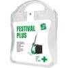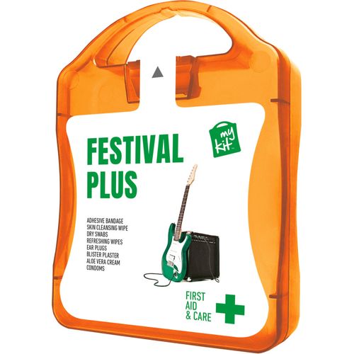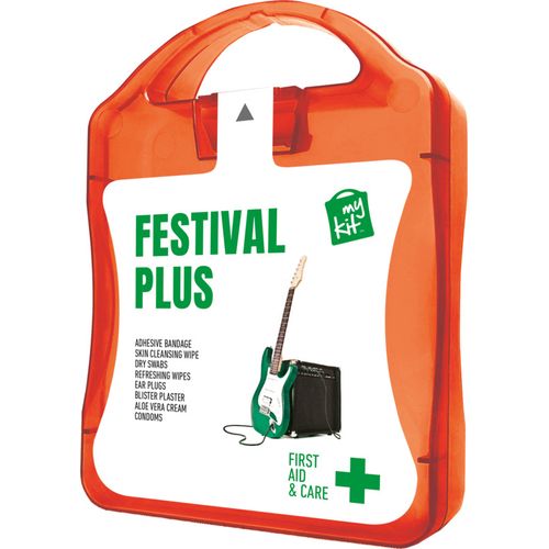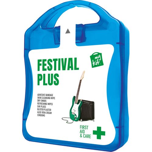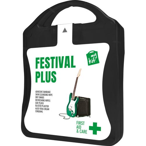 Kit ideal para qualquer festival. Com este kit estará preparado para qualquer momento do festival. Conteúdo: 12 pensos rápidos impermeáveis, 4 toalhetes de limpeza, 2 toalhetes secos, 2 toalhetes refrescantes, 2 preservativos, 1 penso para bolhas, 1 creme de aloé vera, 2 tampões para ouvidos. Todos os acessórios de primeiros socorros cumprem com todos os regulamentos da UE. O preço inclui impressão a cores no rótulo.Plástico Green Points Total :20 – CO2 foot print : 0,407Etiqueta adesiva digital – frontal – max color : full colour – 90 x 127 mm.