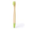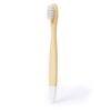 Escova de dentes fabricada em bambu. Para os mais pequenos de casa, com cerdas e pontas em cores divertidas. Apresentada individualmente em caixa kraft. Materiais como o bambu promovem a utilização de matérias-primas naturais, reduzindo as emissões poluentes. Provém de uma planta de grande resistência e versatilidade, com crescimento e regeneração rápidos, sendo uma excelente alternativa ao uso da madeira tradicional.Composition : Bambu.