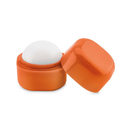 Bola bálsamo labial natural, caixa cúbica em ABS. Testado dermatologicamente. SPF10. Sabor: Baunilha.