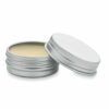 Bálsamo labial vegano em lata de alumínio com tampa de rosca. Dermatologicamente testado. SPF10.Sabor: Baunilha.