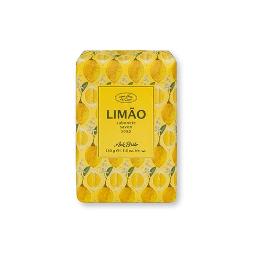 Sabonete com base em sabão vegetal e enriquecido com óleo de côco. Quando utilizado este sabonete proporciona uma espuma cremosa deixando a pele limpa, suave e hidratada. Capacidade até 160 g. Sabonete amigo do ambiente produzido tradicionalmente em Portugal. Uma coleção que pretende destacar aromas frutados vibrantes: Cor 108: Sabonete com aroma de limãoCor 115: Sabonete com aroma de ameixa 90 x 60 x 30 mmMaterials : Sabão vegetal, óleo de cocoPacking : Embalagem em papel – Repacking : Embalagem em papelDefault customisation : Caixa – Corpo (Autocolantes – 40 x 20).