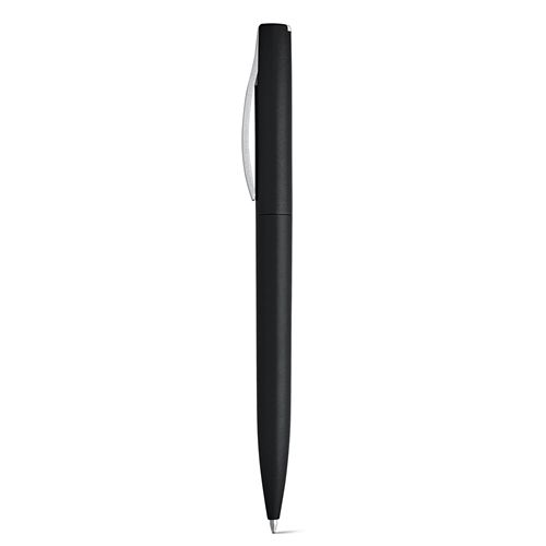 Esferográfica em ABS com mecanismo twist. Esferográfica com clipe e acabamento metalizado. Escrita a preto. ø11 x 146 mmProperties : Escrita a preto, Mecanismo twistMaterials : ABSCertificates : MSDS, REACH Default customisation : Esferográfica – Lateral clipe (Tampografia – 40 x 6).