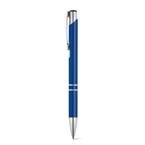 Esferográfica em alumínio com clipe e acabamento metalizado. Disponível numa variada gama de cores. Escrita a azul. ø10 x 137 mmProperties : Escrita a azulMaterials : AlumínioCertificates : MSDS, REACHPacking : Polybag – Repacking : Sem plástico em vácuoDefault customisation : Esferográfica – Corpo (Laser circular – 12 x 55).