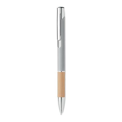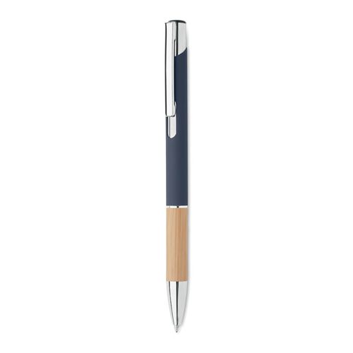Esferográfica de alumínio com botão de pressão e pega em bambu. Tinta azul.Dimensions : Ø1X13,6 CM
