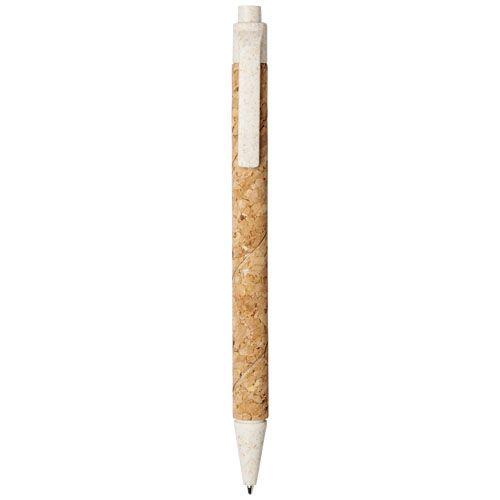 Caneta esferográfica ecológica com mecanismo de clique, com corpo produzido em cortiça, e guarnições em palha de trigo que está disponível numa variedade de cores. A palha de trigo são os talos que sobram após a colheita dos grãos de trigo. Isto reduz a quantidade de plástico utilizado, proporcionando uma alternativa amiga do ambiente. A cor da cortiça pode variar.Cork, Wheat straw, Plástico Green Points Total :10 – CO2 foot print : 0,097Tampografia – corpo – max color : 4 – 70 x 5 mm.