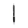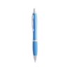 Esferográfica com um design bicolor ousado, com acessórios na cor prateada, corpo com acabamento suave e em várias cores. Clip de metal original e confortável. Com anel central prateado. Escrita de tinta azul.