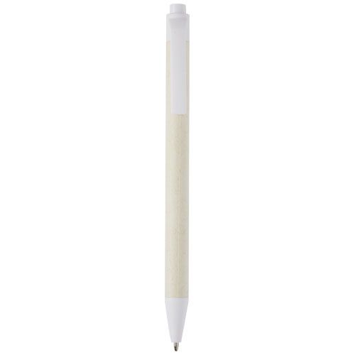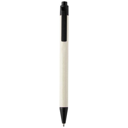 Esferográfica com mecanismo de clique com um corpo feito de embalagens de leite recicladas (até 70 %). O botão, o clipe e a ponta são feitos de plástico PLA. As embalagens de leite usadas são recolhidas, classificadas, processadas e transformadas em papel, realmente transformando resíduos em algo útil.Cartão reciclado, PLA Plastic Green Points Total :39 – CO2 foot print : 0,013Tampografia – corpo – max color : 4 – 60 x 5 mm.