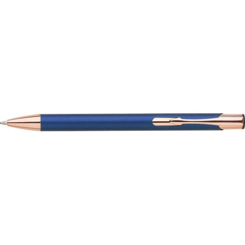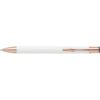 Esferográfica de alumínio com acabamento mate e detalhes em ouro rosa. Tinta azul.Quando gravado, o desenho será prateado. Colors : branco Materials : ABS/Alumínio/Plástico/Aço Certificates : EN71-3 (nr 1), Cadmium (nr 2), PAHs (nr 4), Phthalates (nr 13), Lead (nr 19), BSCI (nr 195).