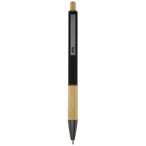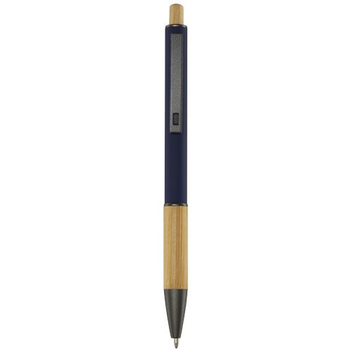 A esferográfica “Darius” é feita de alumínio reciclado, o que requer menos energia do que produzir alumínio a partir de matérias-primas. Também reduz a quantidade de resíduos em aterros e ajuda a conservar os recursos naturais, com o objetivo de reduzir as emissões de efeito estufa. O botão e a parte inferior do corpo são feitos de bambu. Cor da tinta: Azul. Comprimento de escrita: 800 metros. Tamanho do bico: 1,00 mm.Recycled Aluminium Green Points Total :12 – CO2 foot print : 0,05Gravação laser – corpo – max color : 1 – 30 x 5 mm.