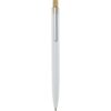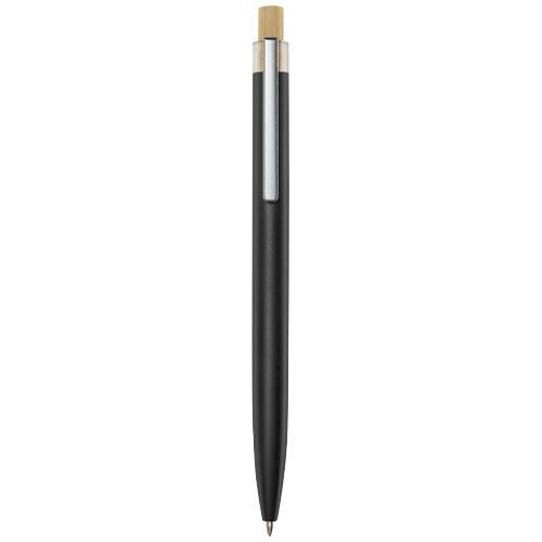 A esferográfica “Nooshin” é feita de alumínio reciclado, o que requer menos energia do que produzir alumínio a partir de matérias-primas. Também reduz a quantidade de resíduos em aterros e ajuda a conservar os recursos naturais, com o objetivo de reduzir as emissões de efeito estufa. O botão é feito de bambu. Cor da tinta: Azul. Comprimento de escrita: 800 metros. Tamanho do bico: 1,00 mm.Recycled Aluminium Green Points Total :12 – CO2 foot print : 0,08Gravação laser – corpo – max color : 1 – 85 x 5 mm.