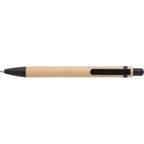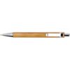 Esferográfica de bambú com detalhes em metal. Escrita azul Colors : castanho Materials : ABS/Aço/Bambu Certificates : Safety Data Sheet (SDS) (nr 27), EN71-3 (nr 1), Cadmium (nr 2), PCP (nr 39), BSCI (nr 195), PAHs (nr 4), Phthalates (nr 13), Lead (nr 19).