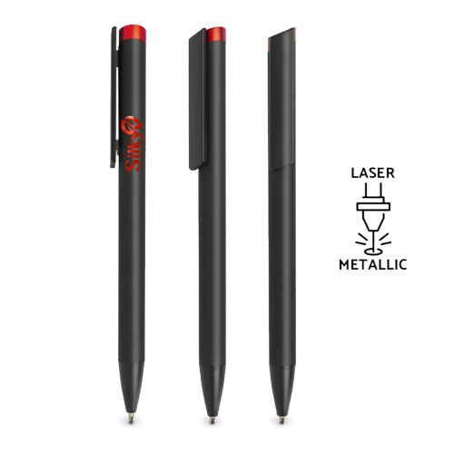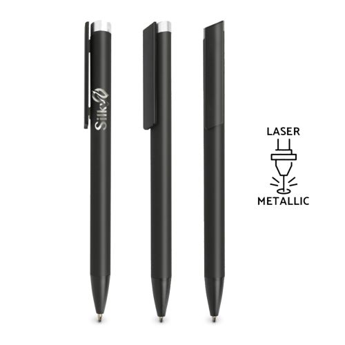 Esferográfica em alumínio, com acabamento em borracha Clipsy