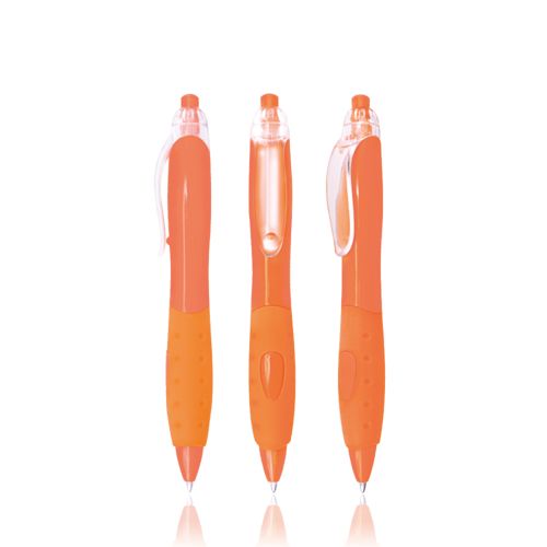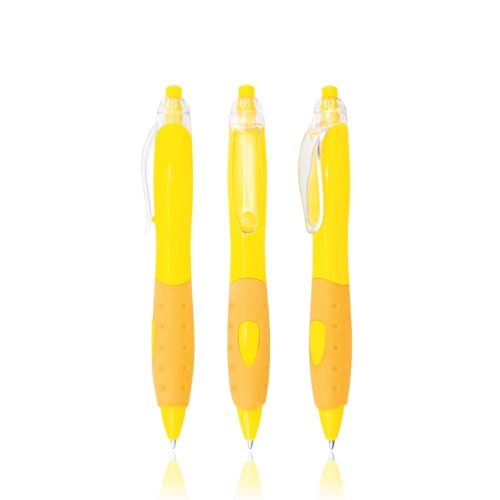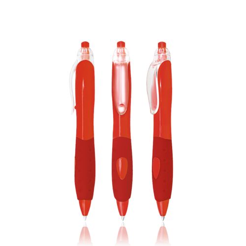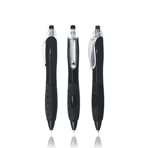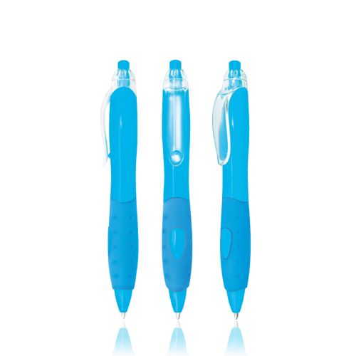 Esferográfica de plástico, detalhes transparentes. Escrita preta, sistema pulsar. Esferográfica com pega e corpo coloridos e clip transparente. Divulgue a sua marca com este brinde.