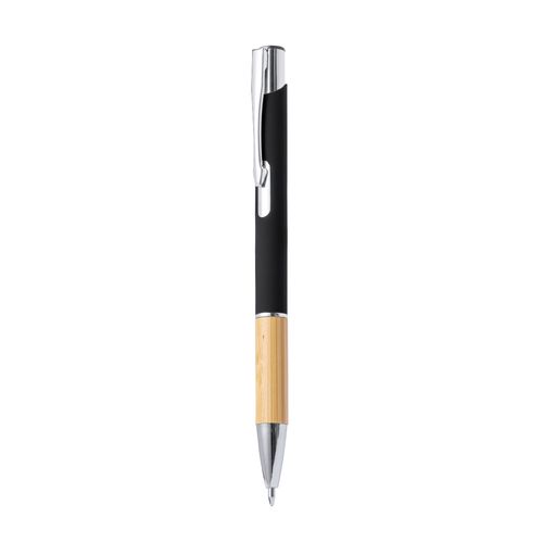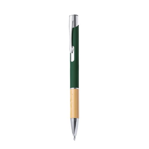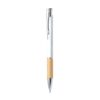 Elegante esferográfica de linha nature e mecanismo pulsador. Corpo em resistente alumínio de acabamento aborrachado e pega em cortiça, com o corpo numa ampla gama de cores distintas. Clip metálico, com pulsador retrátil e em tinta azul. Apresentada em bolsa individual reciclada.Elaborada com elementos vegetais para assim fomentar a utilização de matérias-primas naturais e reduzir as emissões poluentes.Composition : Bambu/ Alumínio.