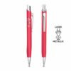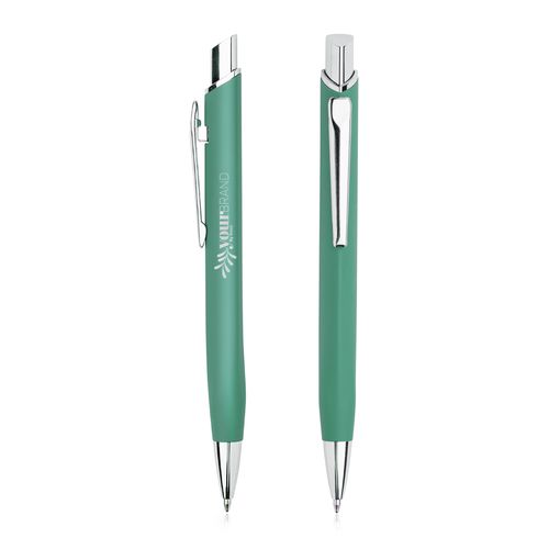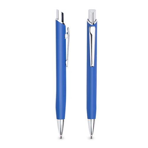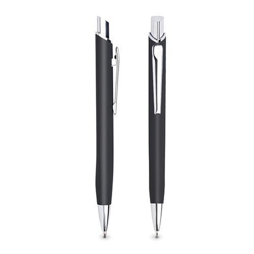 Esferográfica triangular em metal, com acabamento em borracha. De formato peculiar, esta esferográfica apresenta um certo requinte graças ao seus detalhes e à sua personalização que, quando feita a laser, apresenta um acabamento espelhado. Um brinde que lhe permite fugir da esferográfica comum e da personalização simples. Com sistema pulsar. Esta esferográfica é de escrita preta.
