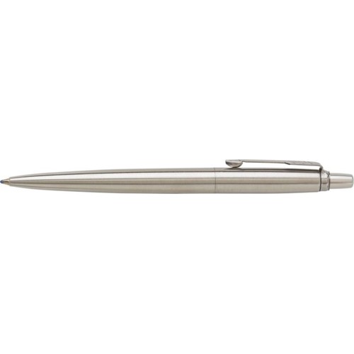 Esferográfica Parker Jotter® em aço inoxidável com botão de pressão. Tinta azul. Inclui caixa de oferta, apresentada separadamente. Colors : prata Materials : Metal/Aço Inoxidável.