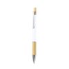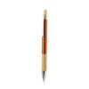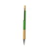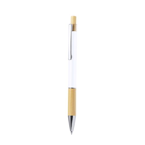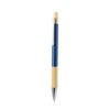 Elegante esferográfica em bambu e alumínio com mecanismo pulsador. Corpo em alumínio resistente com acabamento brilhante e pega em bambu, disponível numa ampla gama de cores distintas. Clip de metal, com botão de bambu e tinta azul. Apresentado numa bolsa individual reciclada.Materiais como o bambu favorecem a utilização de matérias-primas naturais, reduzindo as emissões poluentes. Provém de uma planta muito resistente e versátil, de crescimento e regeneração rápidos, o que o torna uma excelente alternativa à utilização da madeira tradicional.Composition : Alumínio/ Bambu.