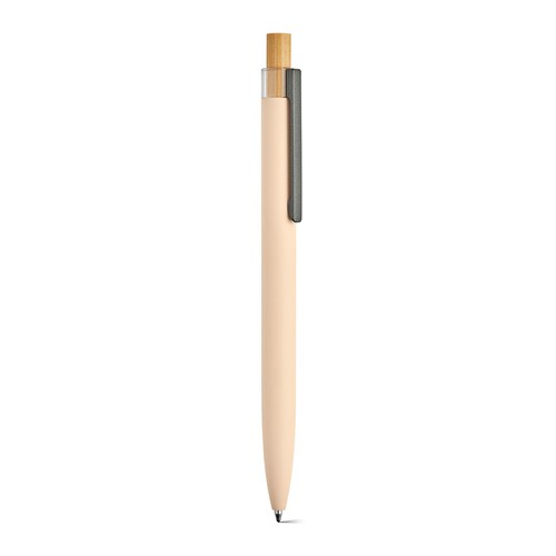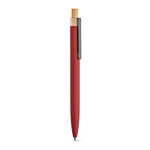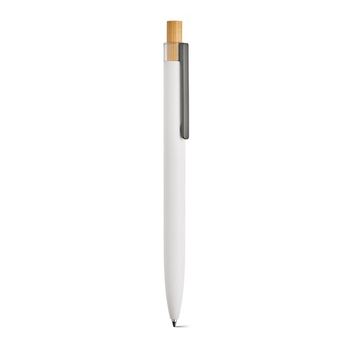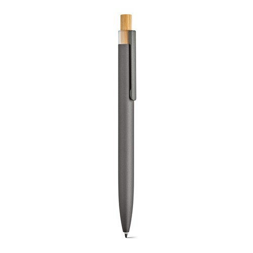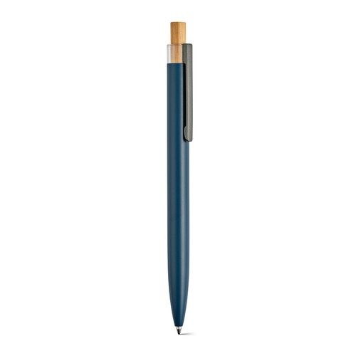 Uma esferográfica ecológica, cuidadosamente projetada com um corpo de alumínio reciclado e complementada com elementos de rPET e bambu na parte superior. Desfrute de 1 km de tinta azul Dokumental®. Vem numa caixa de papel kraft natural amiga do ambiente. Materials : Alumínio Reciclado CO2 : 0.24 Printing technique default : Gravação a Laser.