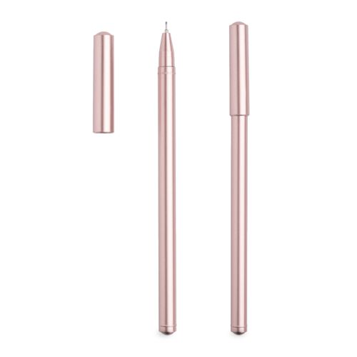 Esferográfica de gel em plástico, acabamento metálico. O plástico de cores metálicas e modernas fazem desta esferográfica um brinde ideal para divulgar o seu projeto. Esferográfica de gel com escrita fina. Com sistema tampa. Esta esferográfica é de escrita preta.
